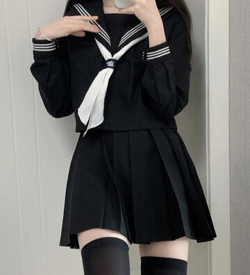 Seifuku styled uniform with an oversized hoodie that has ribboned sleeves. Either shorts or skirt to be worn under the hoodie. Ribbon on collar. Plaster/bandaid seen on face and a bandage around the neck.